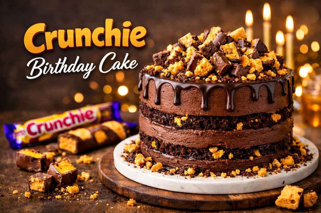 A Crunchie birthday cake combines moist chocolate sponge with golden honeycomb crunch inspired by the classic Crunchie bar. This in-depth guide explains how to bake, assemble, decorate, and store the cake correctly, ensuring rich chocolate flavour, balanced sweetness, and honeycomb that stays crunchy until serving.
