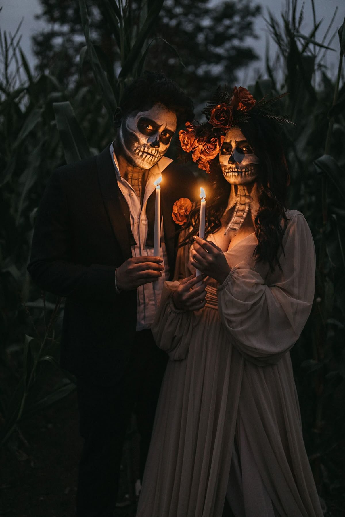 A skeleton costume can be built from a plain black outfit paired with DIY face paint. Create simple white bone outlines using makeup or chalk paint. If you want something slightly more artistic, paint half your face as a skeleton, giving a modern half-skull look.